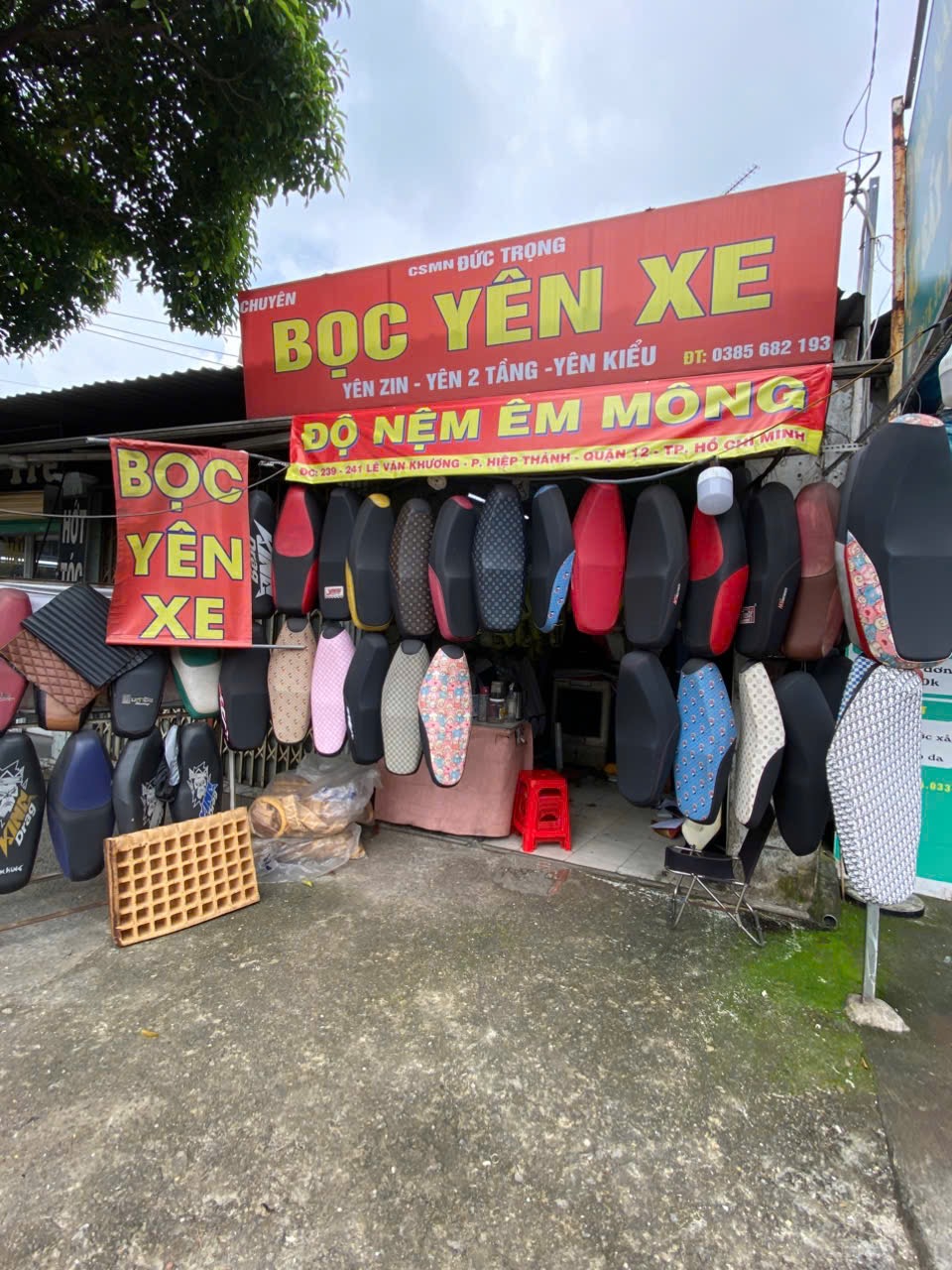 chi nhánh Q12: 239 - 241 Lê Văn Khương, Hiệp Thành, Quận 12, Hồ Chí Minh chi nhánh Bình Dương : 125b đường Bình Hoà 1 Dt743 Lái Thiêu, Thuận An, Bình Dương Số điện thoại: 0385 682 193 2024 Copyright BỌC YÊN XE Q12 Khi bạn sở hữu một chiếc xe máy, việc bảo trì và nâng cấp là điều rất quan trọng để giữ cho xe luôn mới mẻ và bền đẹp. Dịch vụ bọc yên xe máy tại Q12 – Lê Văn Khương sẽ giúp bạn cải thiện không chỉ vẻ ngoài mà còn cả sự thoải mái khi sử dụng. Với đội ngũ thợ tay nghề cao và nguyên liệu chất lượng, chúng tôi cam kết mang đến cho bạn những sản phẩm tốt nhất.